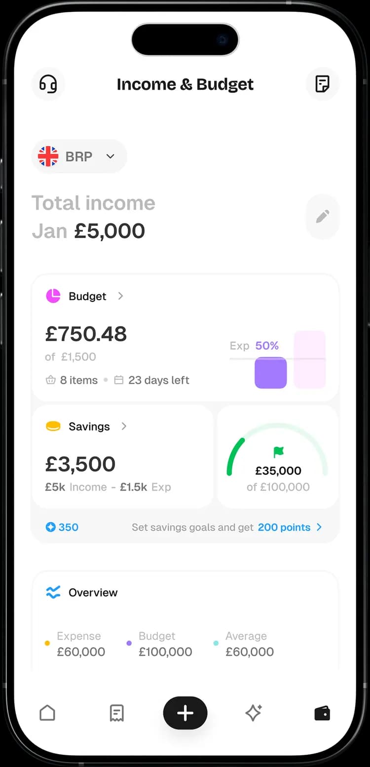 Add your income, and Expense AI does the rest. We subtract your monthly spending to show how much you’ve saved. Want to take it further? Create budgets or set savings goals to build financial discipline.